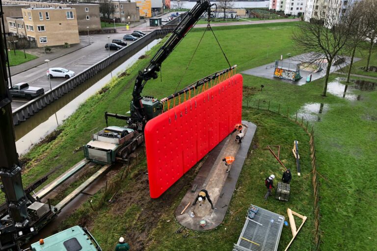 Op 29 december hebben we ‘De Muur’, een replica kunstwerk van Alfred Eikelenboom, geplaatst in Amsterdam Noord. Dit object is 15 meter lang en 5 meter hoog, en is daarmee met zijn totale oppervlakte van 180 vierkante meter het grootste object wat Jules Dock geproduceerd heeft.
